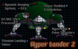 This site describes enjoyable games, gives you background about their creation, and answers frequently asked questions. For example, at the left you'll see the title screen for Hyper Lander 2, which combines puzzle and arcade game genres. So, read on, and contact me if you have comments or suggestions!