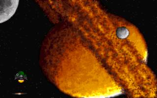 Screen Shot: Hyper Lander 2 Classic Once you manage to escape from the falling moon you get some more information about the mysterious origin of the destroyed base and a glimpse of what is actually happening.